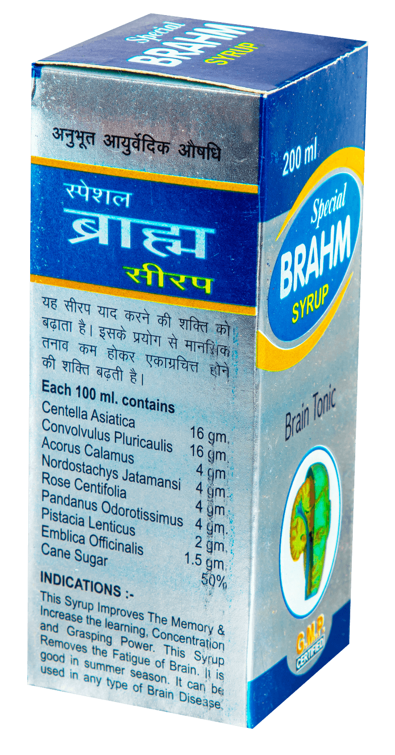 This Syrup Improves The Memory & Increase the learning, Concentration, and Grasping Power. This Syrup Removes the Fatigue of Brain. It is good in summer season. It can be used in any type of Brain Disease.