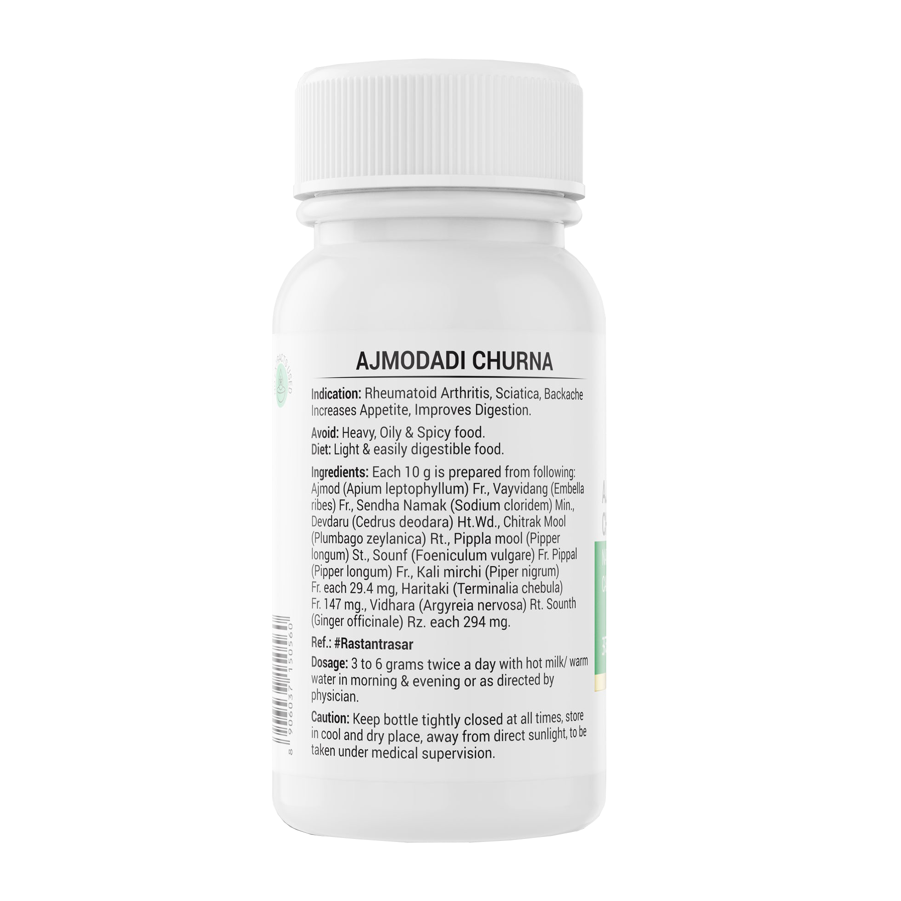 Zingiber Officinale 4 gm.,Cuminum Cyminum 1.43 gm., Piper Nigrum 1.85 gm., Sodii Chloride 1.6 gm., Amonium Chloride 0.9 gm., Nimbu Satva 2.67 gm., Ferula Narthex 0.09 gm., Unaqua sodium Chloride 1.6 gm., Cane Sugar q.s.